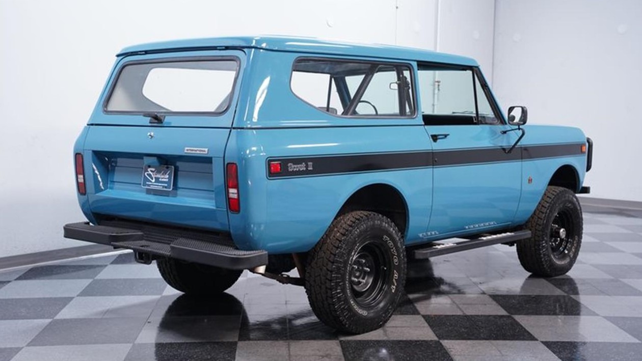 According to the Scout Motors (now an EV brand) website, “The Scout II model debuted with a powertrain lineup that started with the 196ci four, stepped up to the powerful 232ci six, a 304ci V-8, and finally, a big 345ci V-8 that beat Ford and tied GM for maximum cubic inches in the 4×4 SUV realm. Power steering, air conditioning, vastly improved ride quality, sound deadening, on top of a broadened array of styling, comfort and convenience options, put the Scout II model right back in the top tier of the growing SUV market.”